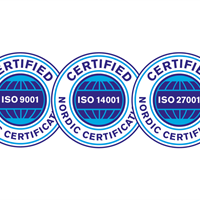 ISO 14001 (Miljöledningssystem): Stärker AddSecures förmåga att möta kundernas förväntningar, följa lagkrav och leverera hållbara IoT-lösningar i alla affärsområden och marknader.